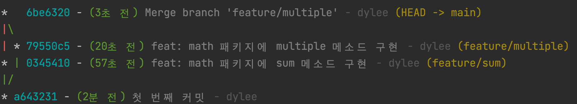 # 3. main 브랜치에서 feature/multiple 브랜치 merge