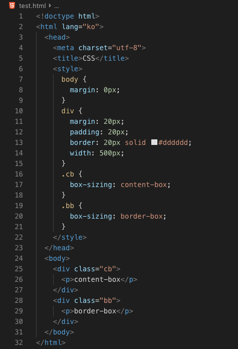 박스의 크기를 어떤 것을 기준으로 계산할지를 정하는 속성