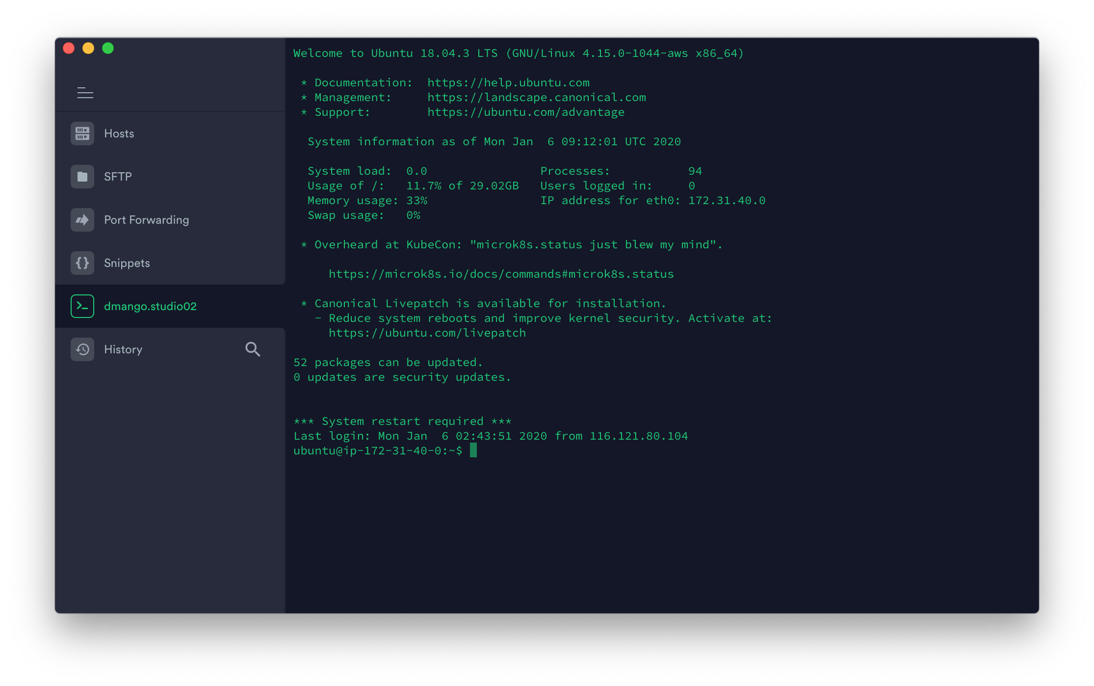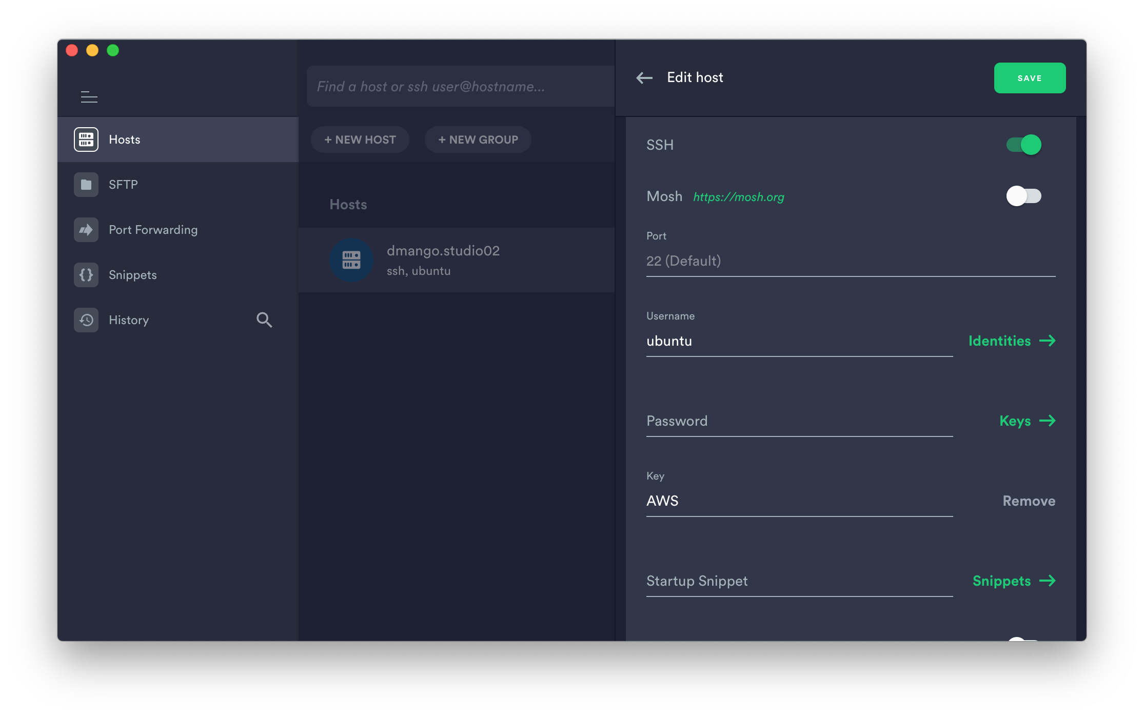 Termius와 같은 전용 SSH Client 프로그램을 사용할 경우 관리가 필요한 여러개의 서버를 손쉽게 접속할 수 있습니다.