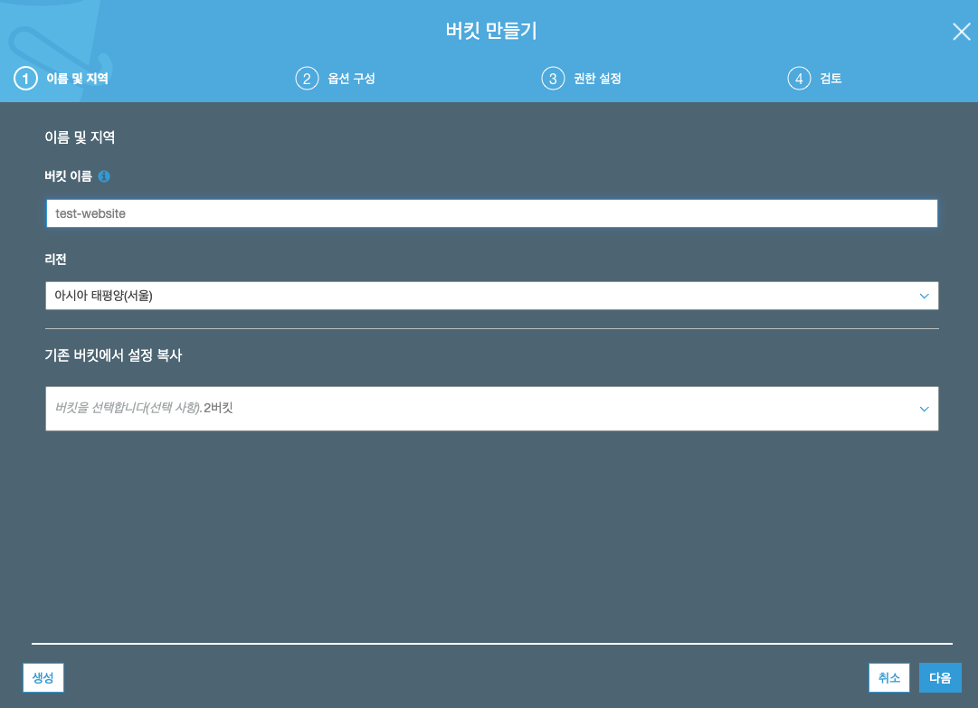- AWS의 S3 버킷 만들기