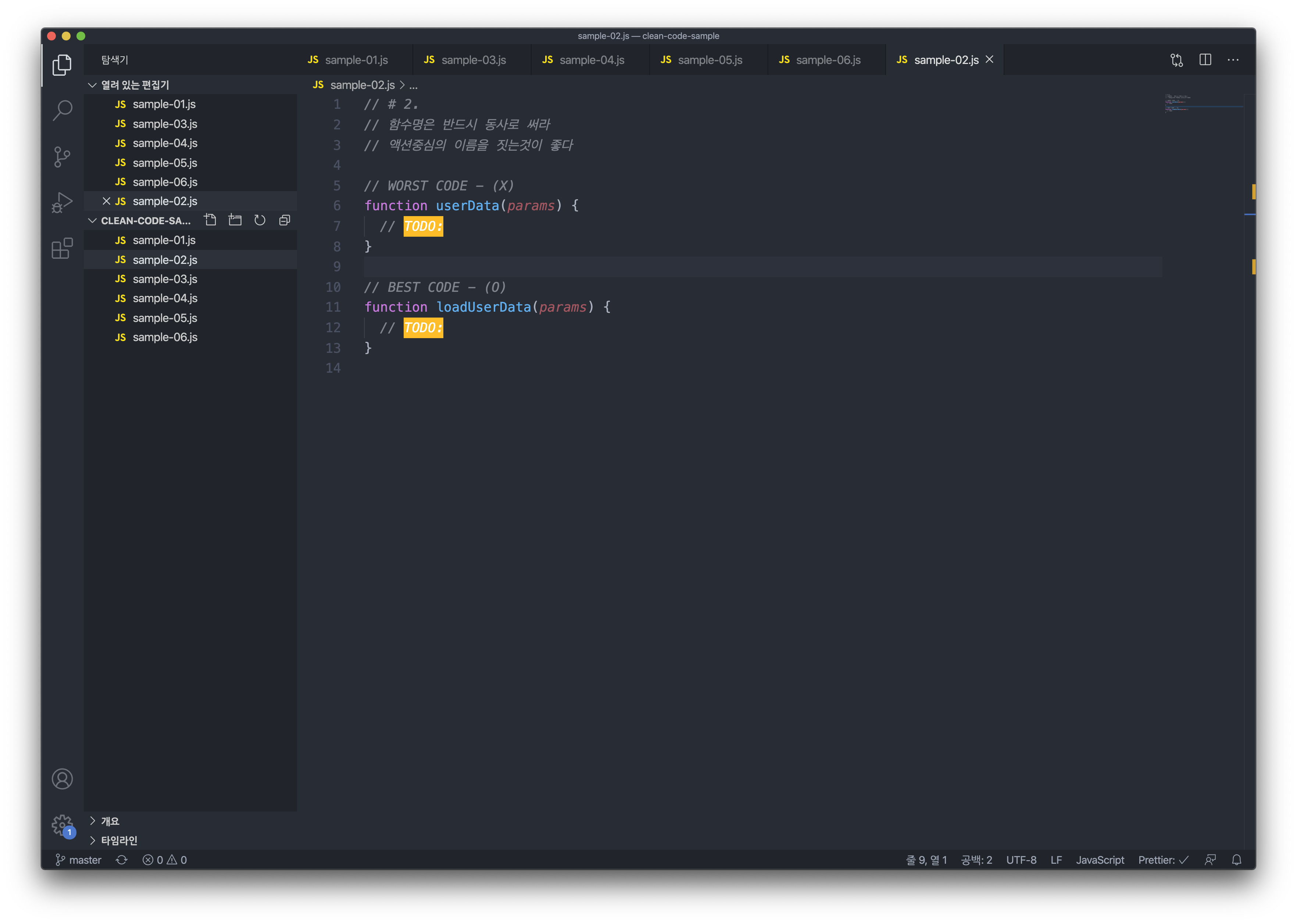 2. 함수명은 반드시 동사로 쓰고, 액션중심의 이름을 짓는것이 좋다
