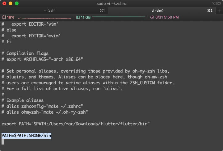 필자는 zshell을 사용하므로 .zshrc 파일 하단에 전역으로 동작하고자하는 경로를 등록한다.