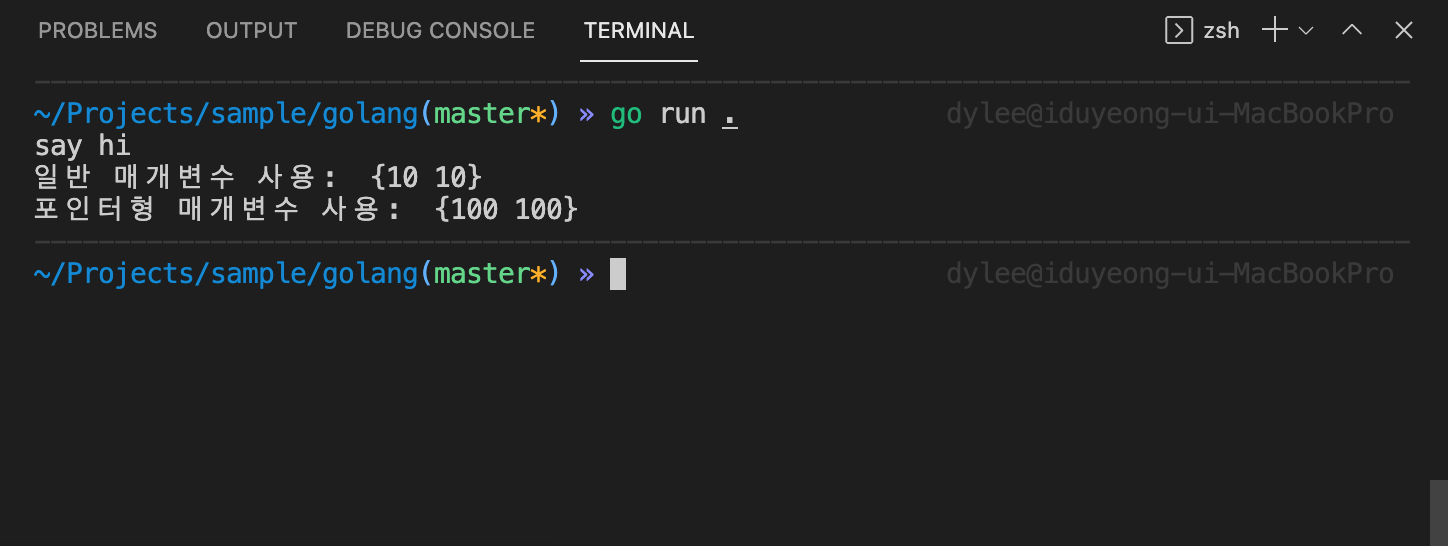 go의 함수를 사용할때 매개변수로 포인터형 매개변수를 사용하느냐 아니면 일반 자료형을 사용하느냐에 따라서 동작 방식이 달라진다.