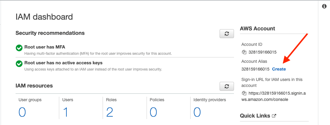 마지막으로 새롭게 생성한 계정으로 로그인하기 전에 Account ID의 별칭을 설정해야한다.