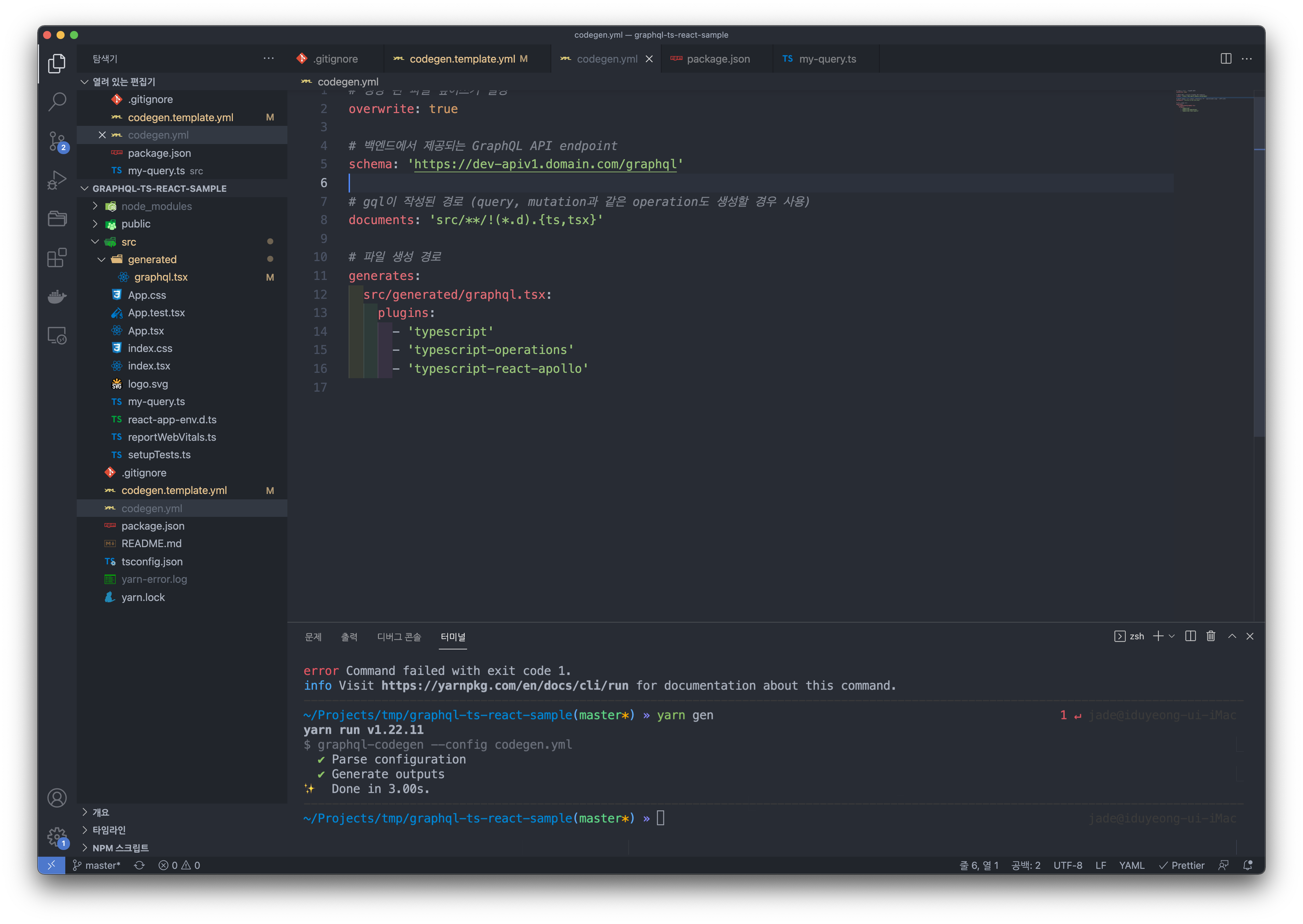 $ yarn gen # gen의 경우 사용자의 선택에 따라 달라진다