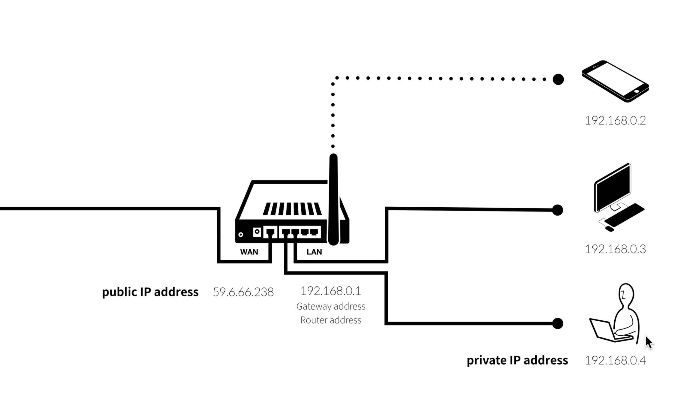LAN에 연결된 IP는 Private IP Address로 회사 내선번호와 같이 지역 네트워크 안에서만 쓸수있는 주소를 의미한다.