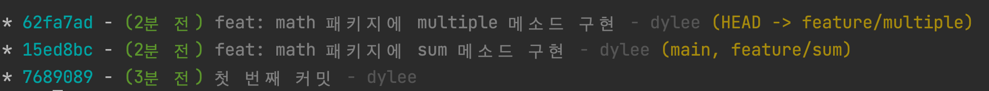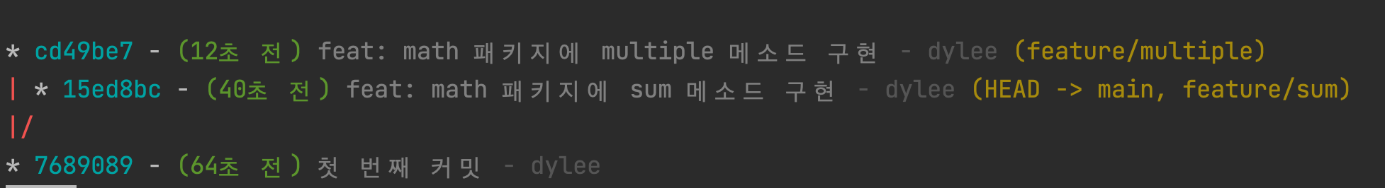 feature/sum 브랜치와 feature/multiple 브랜치가 생성되었다.