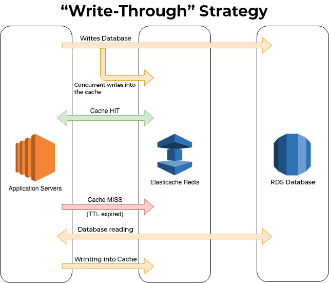 - 데이터의 일관성을 위해 업데이트는 원본 데이터가 갱신될때 단일 트랜잭션으로 캐시 데이터도 갱신 되어야한다.