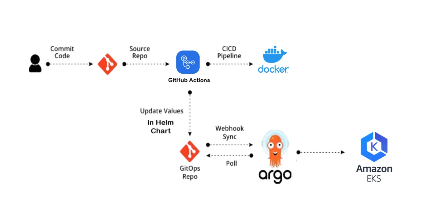 - 리포지토리에 변경 사항이 발생하면 GitOps 도구는 이를 감지하고 자동으로 Kubernetes 클러스터에 반영합니다.