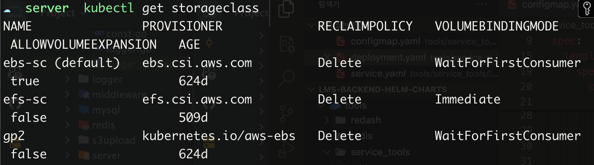 PVC 확장이 가능한지 확인하려면 먼저 사용중인 스토리지 클래스 (StorageClass)를 확인해야한다.