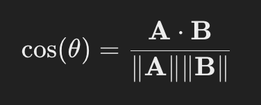 코사인 유사성의 공식은 다음과 같다.