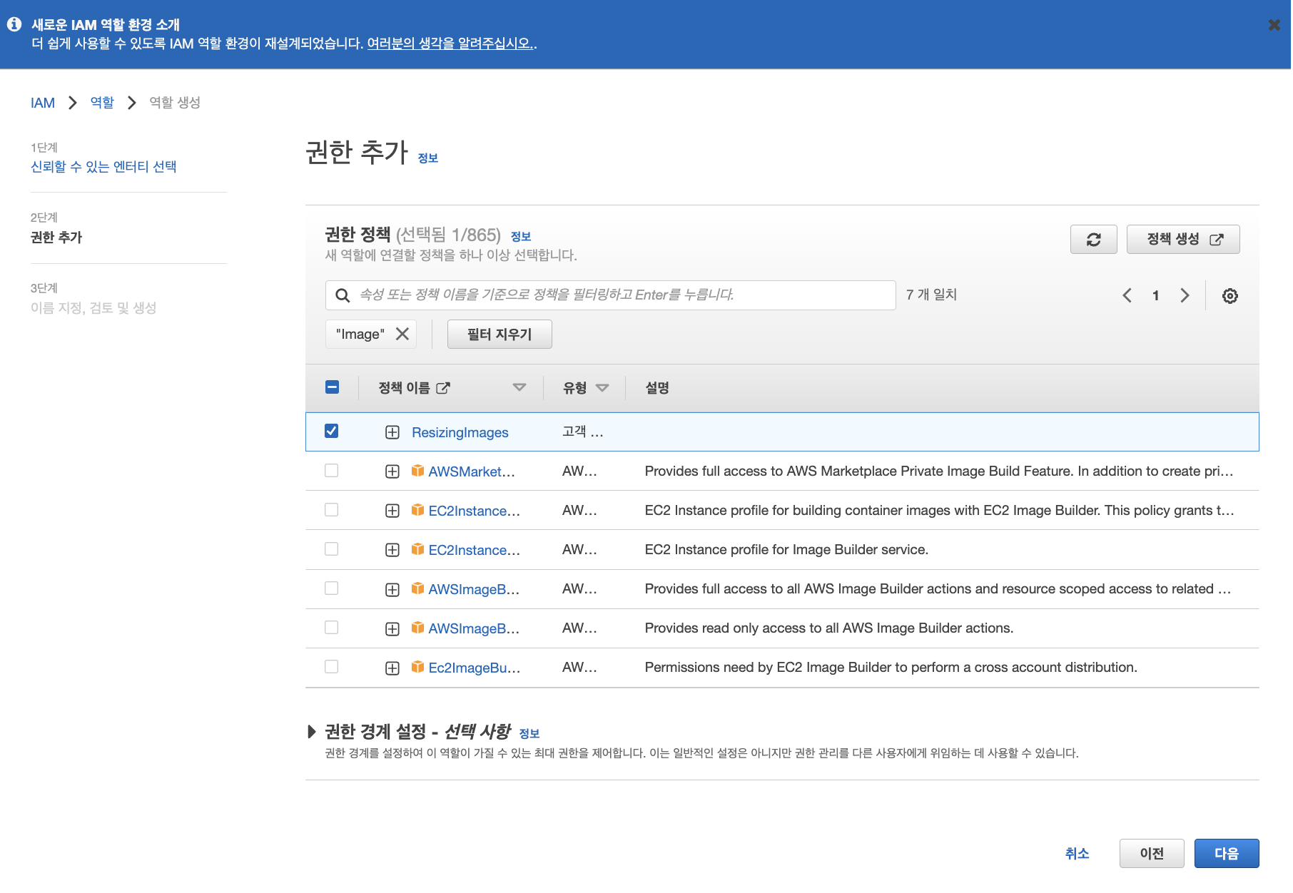 두 번째 단계에서는 조금 전에 만들어두었던 정책을 검색하고 선택한다.